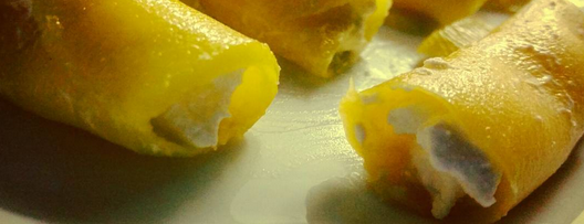 Coloca un poco de mató en cada lámina y enróllalas, como si hicieses canelones.